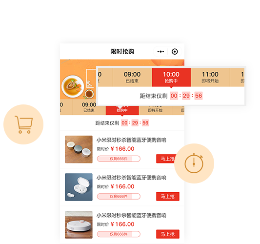 限時秒殺,獲客成單日常營銷爆款商品,限時限量秒殺,制造緊張氛圍,刺激客戶產(chǎn)生強烈購買欲望,帶來流量的高轉(zhuǎn)化。